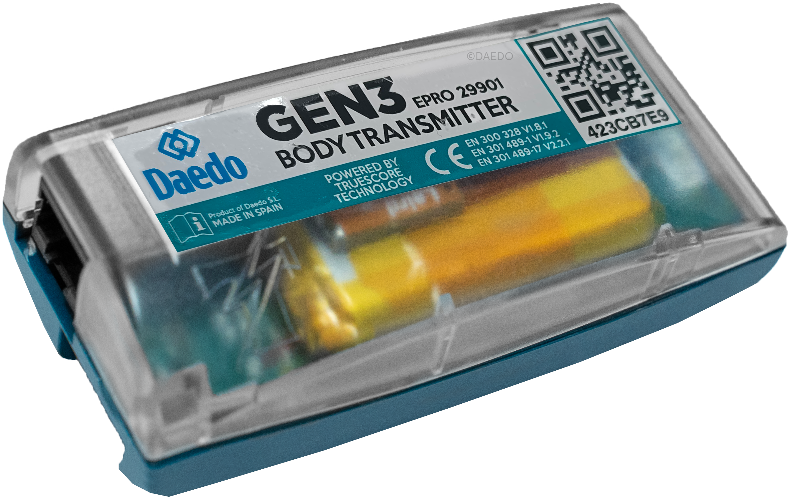 1.深綠色發射器可裝置於電子護胸內做連结用。